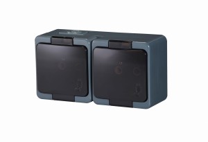 Gniazdo wtyczkowe podwójne 2P+Z bryzgoodporne z klapką dymną IP44