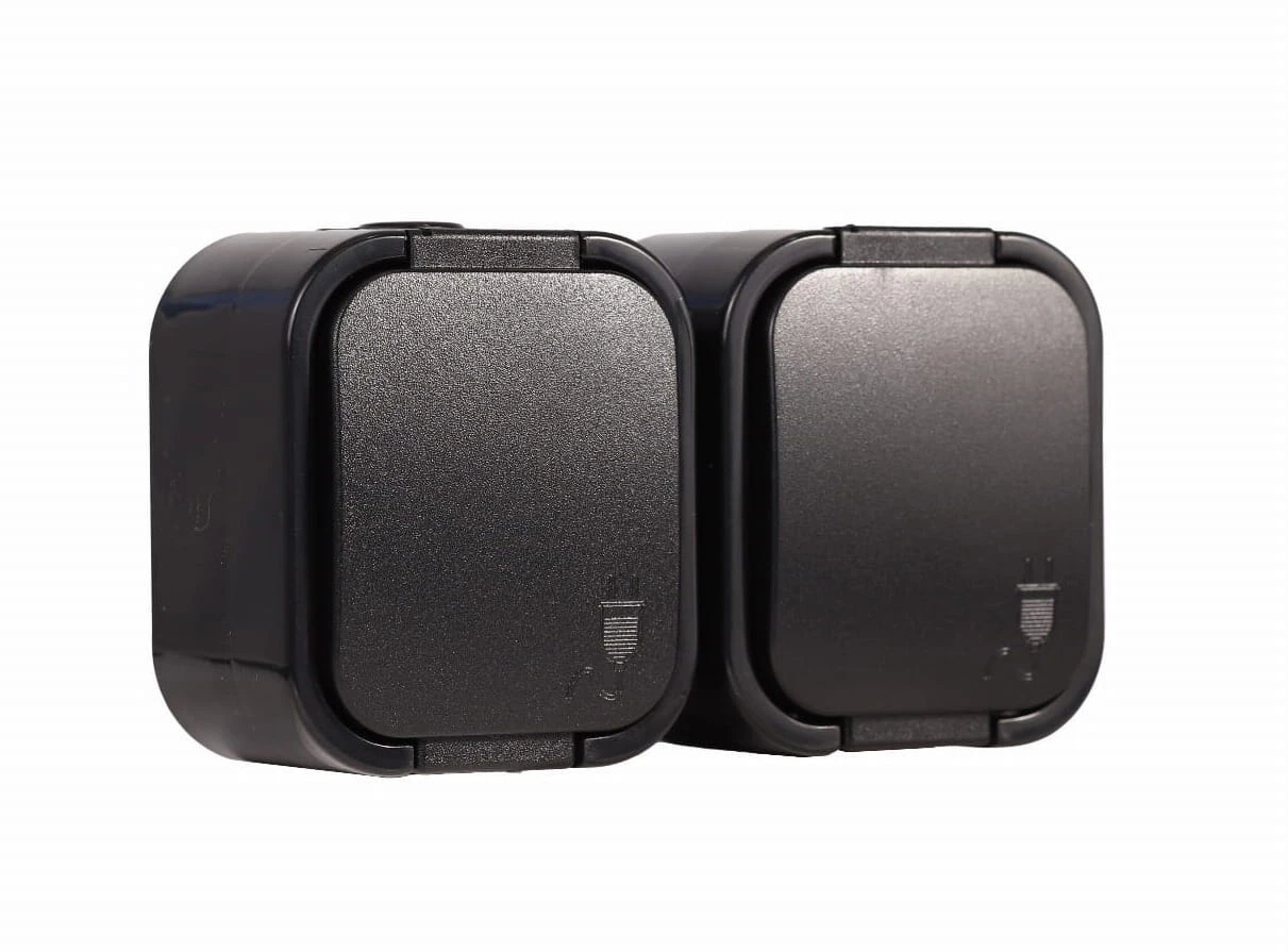 Gniazdo podwójne bryzgoszczelne z uziemieniem i klapką w kolorze czarnym jest gniazdem natynkowym. Głównymi cechami gniazda serii B2 jest wysoki stopień odporności IP co wpływa, że montaż gniazdka można zastosować w miejscach gdzie istnieje zwiększona wilgoć lub kurz.