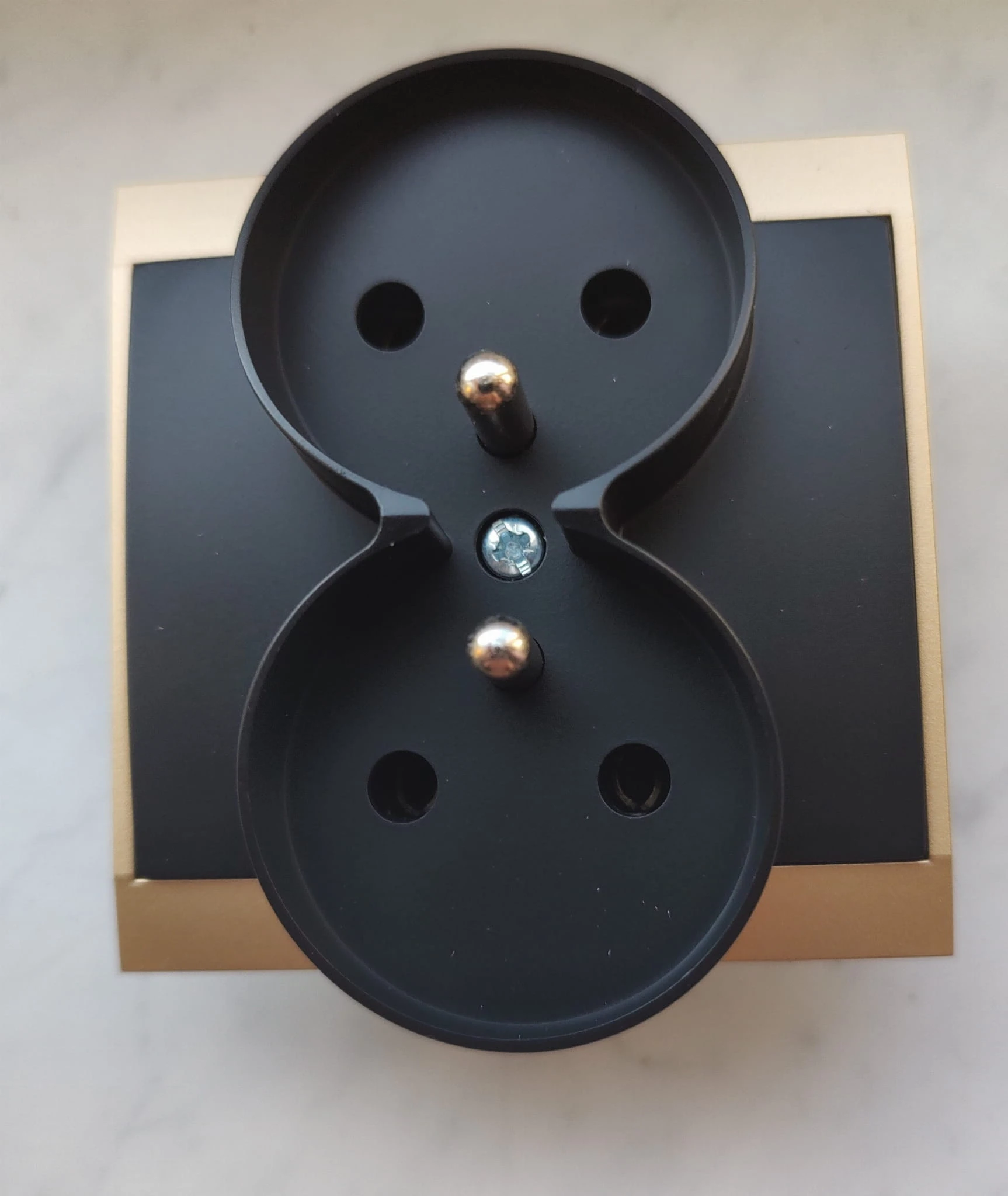 Gniazdo podwójne z uziemieniem luna czarno złoty
