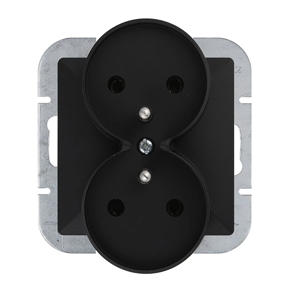 Gniazdo podwójne z uziemieniem perła czarny mat