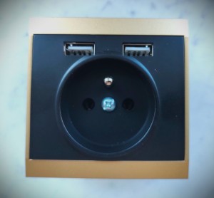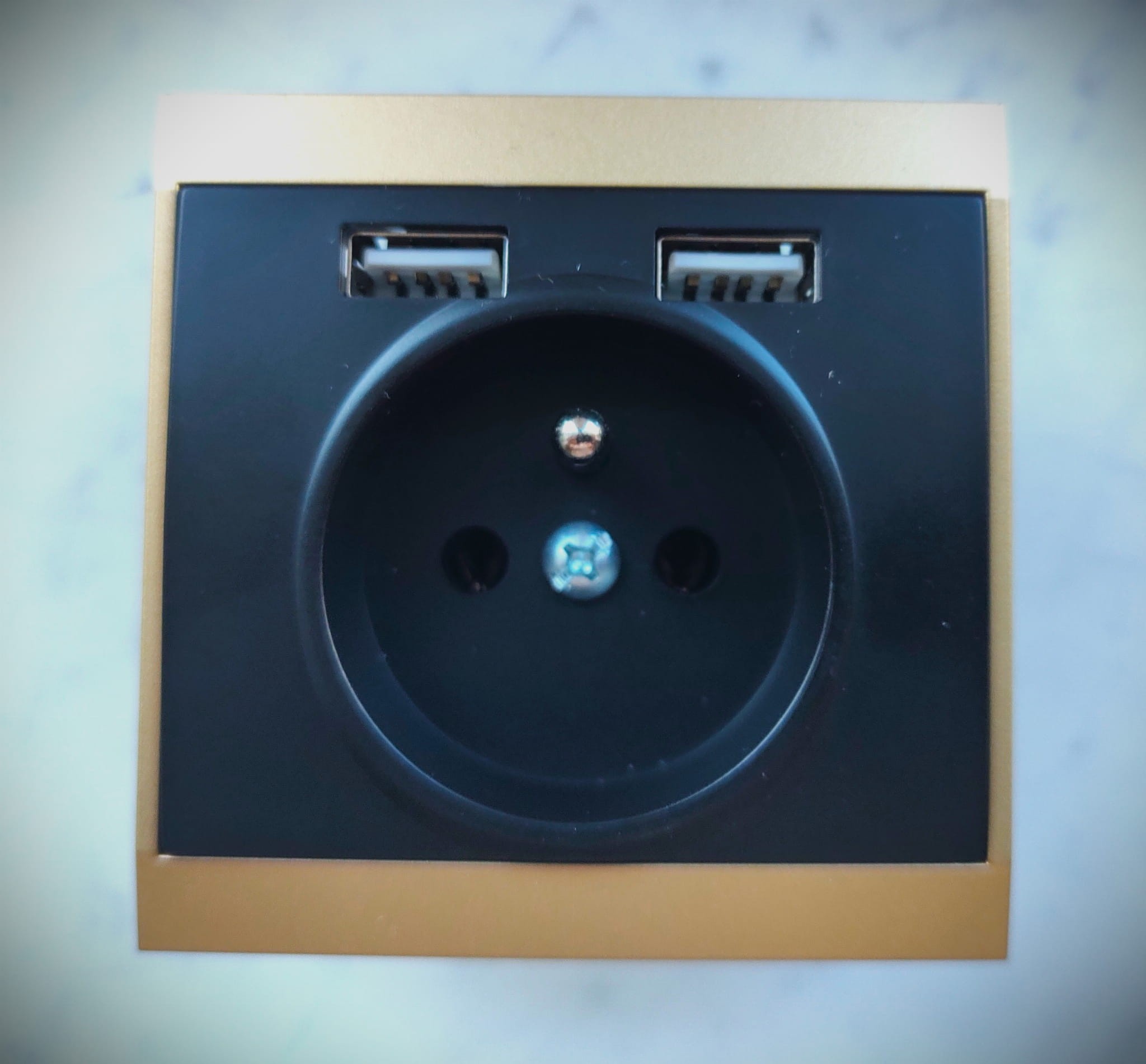 Gniazdo pojedyncze z ładowarką usb luna czarno złoty