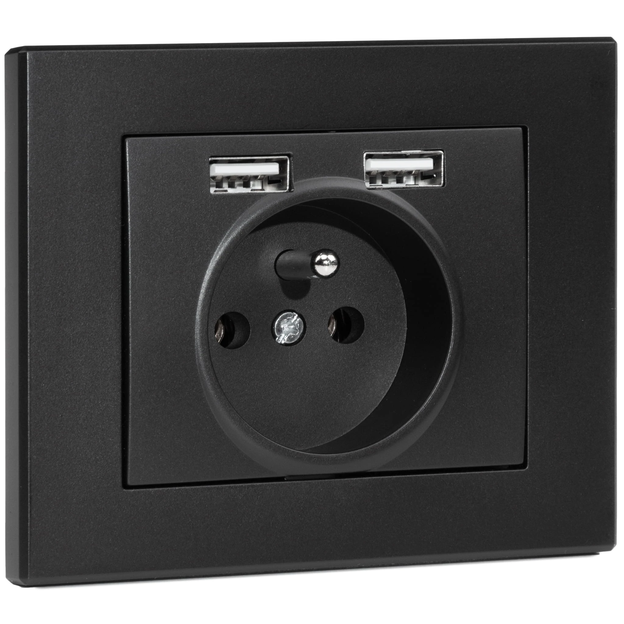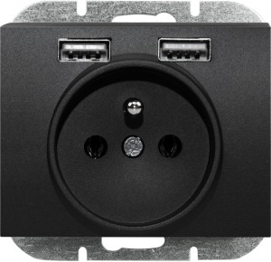 Gniazdo pojedyncze z ładowarką usb onyx czarny mat