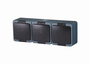 Gniazdo natynkowe potrójne hermetyczne IP 44 z uziemieniem. Mały gabaryt i uniwersalność to główne cechy serii Smart. Gniazdo nadaje się do montażu w budynkach przemysłowych jak i również w budynkach gospodarstwa domowego.