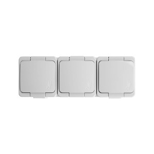 Gniazdo wtyczkowe potrójne 3x2P+Z bryzgoodporne z klapką w kolorze wyrobu IP44